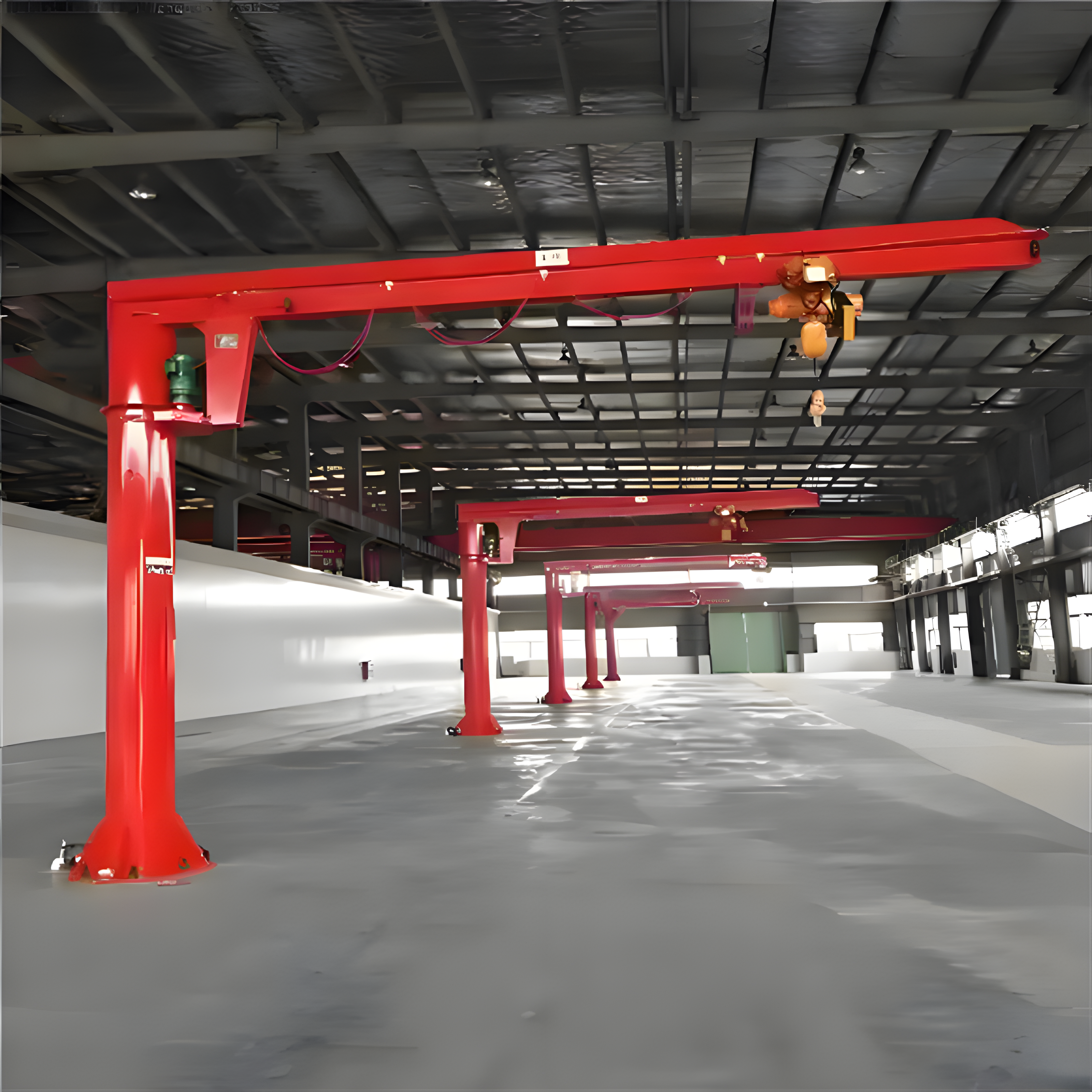 A: Prioritize column-mounted or wall-mounted cantilever cranes. Column-mounted cantilever cranes can rotate 360°, covering circular areas; wall-mounted cantilever cranes do not occupy ground space, are suitable for workstations near walls, and are lower in cost and faster to install.